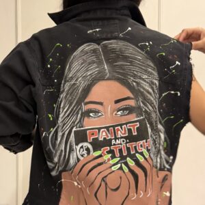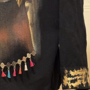 Hand painted statement piece, transforming fabric into wearable art that embodies strength carried in history.