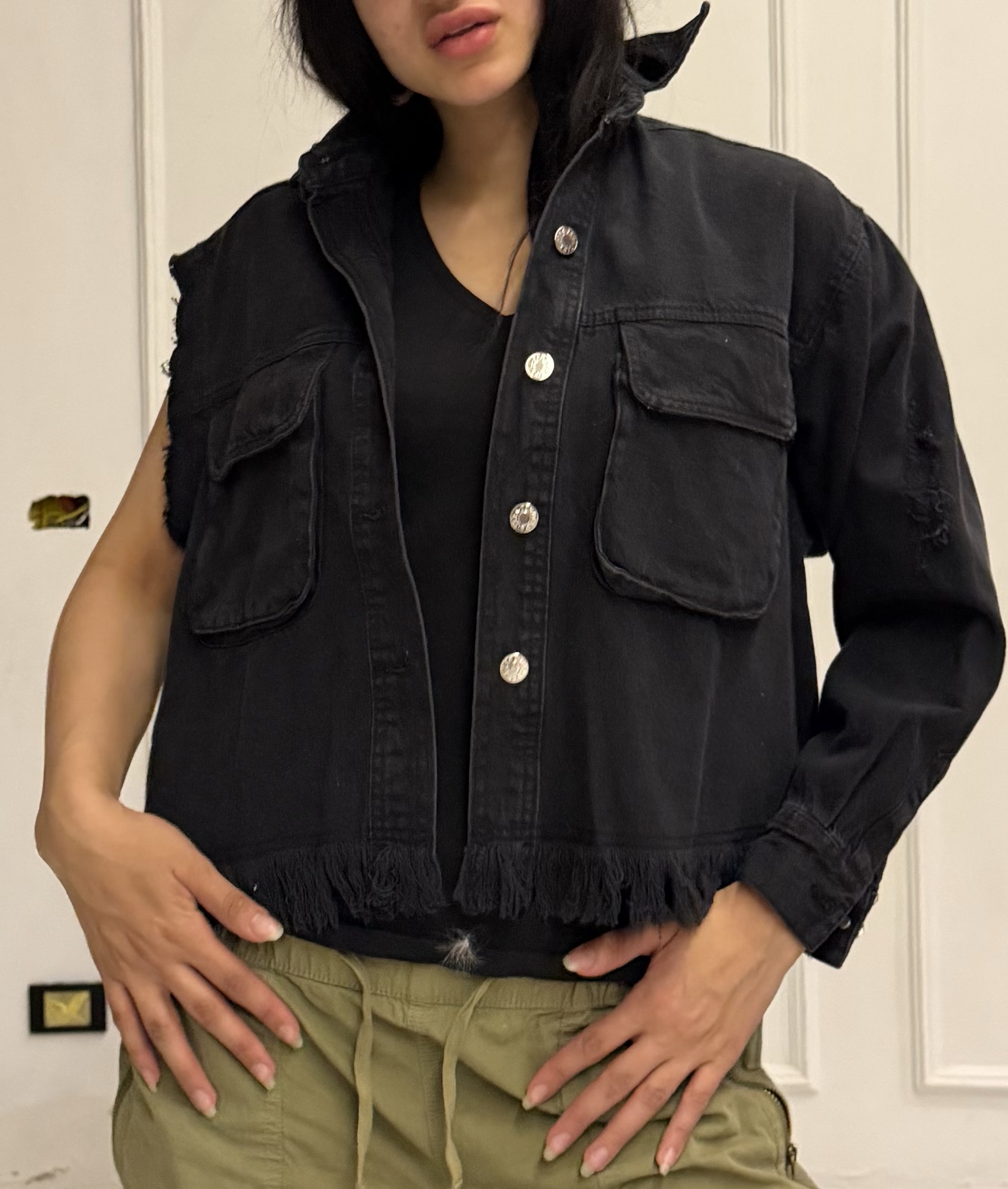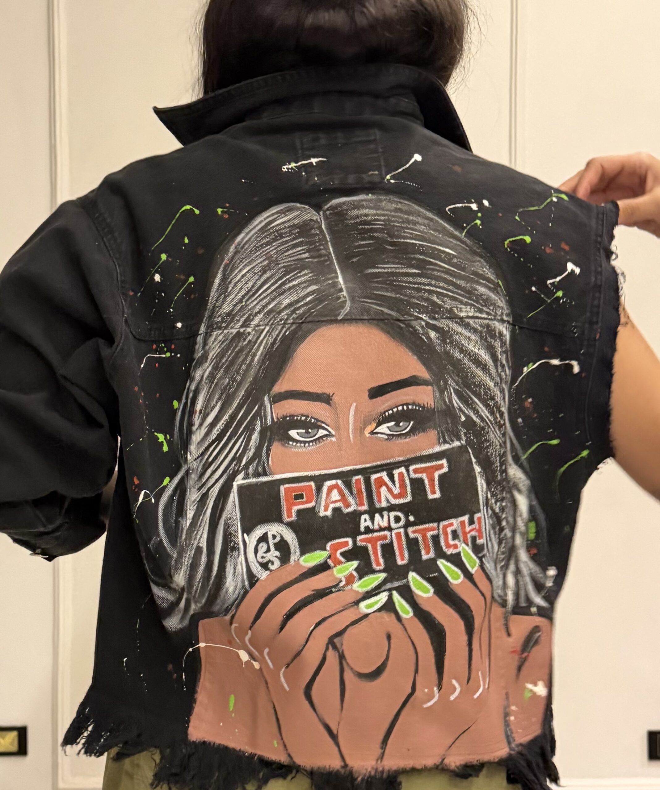 Off limits, is a hand painted wearable artwork, created on denim and finished with care as a moving canvas, painted by hand.